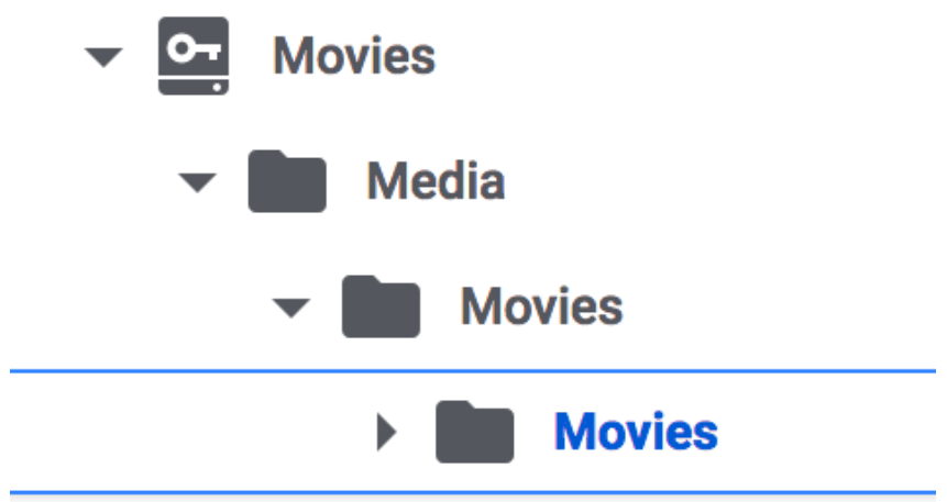 Note: the first “Movies” is the name of the drive as it appears in the Google Drive web UI, not the name of your rclone remote.